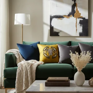 Oriental Foil Print Embroidery Cushion Cover