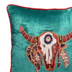Bison Multi Colour Hand Embroidery Teal Green Cushion Cover