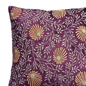 Bison Multi Colour Hand Embroidery Crimson Red Cushion Cover