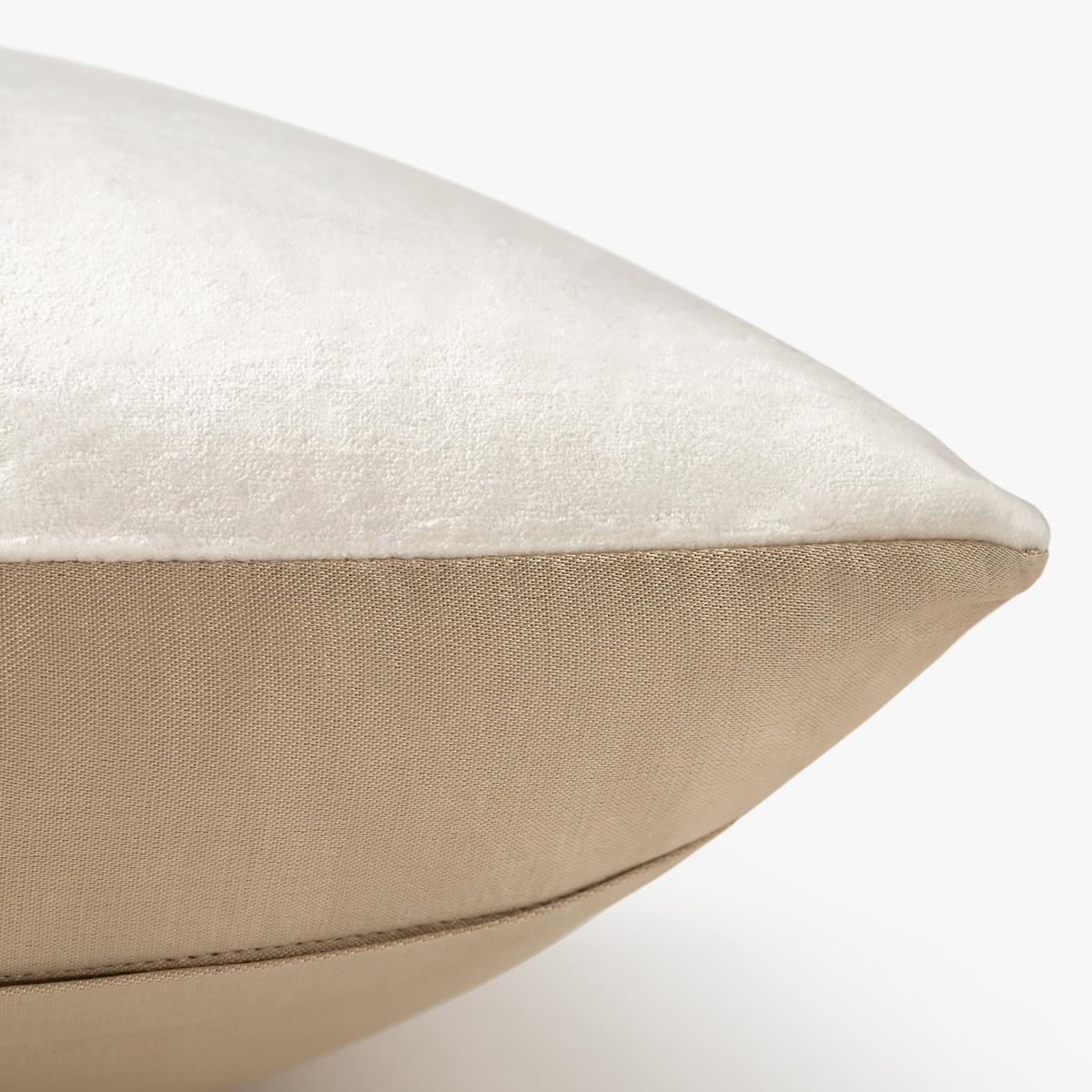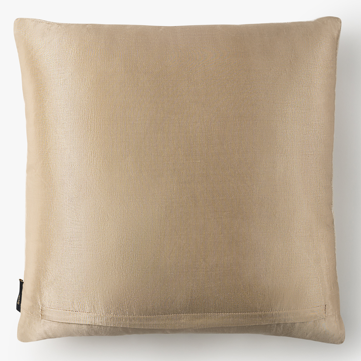 - The design is subtly embroidered in a contrasting warm tone, likely gold or bronze, on a light, neutral fabric, suggesting a plush material like velvet or a fine weave.