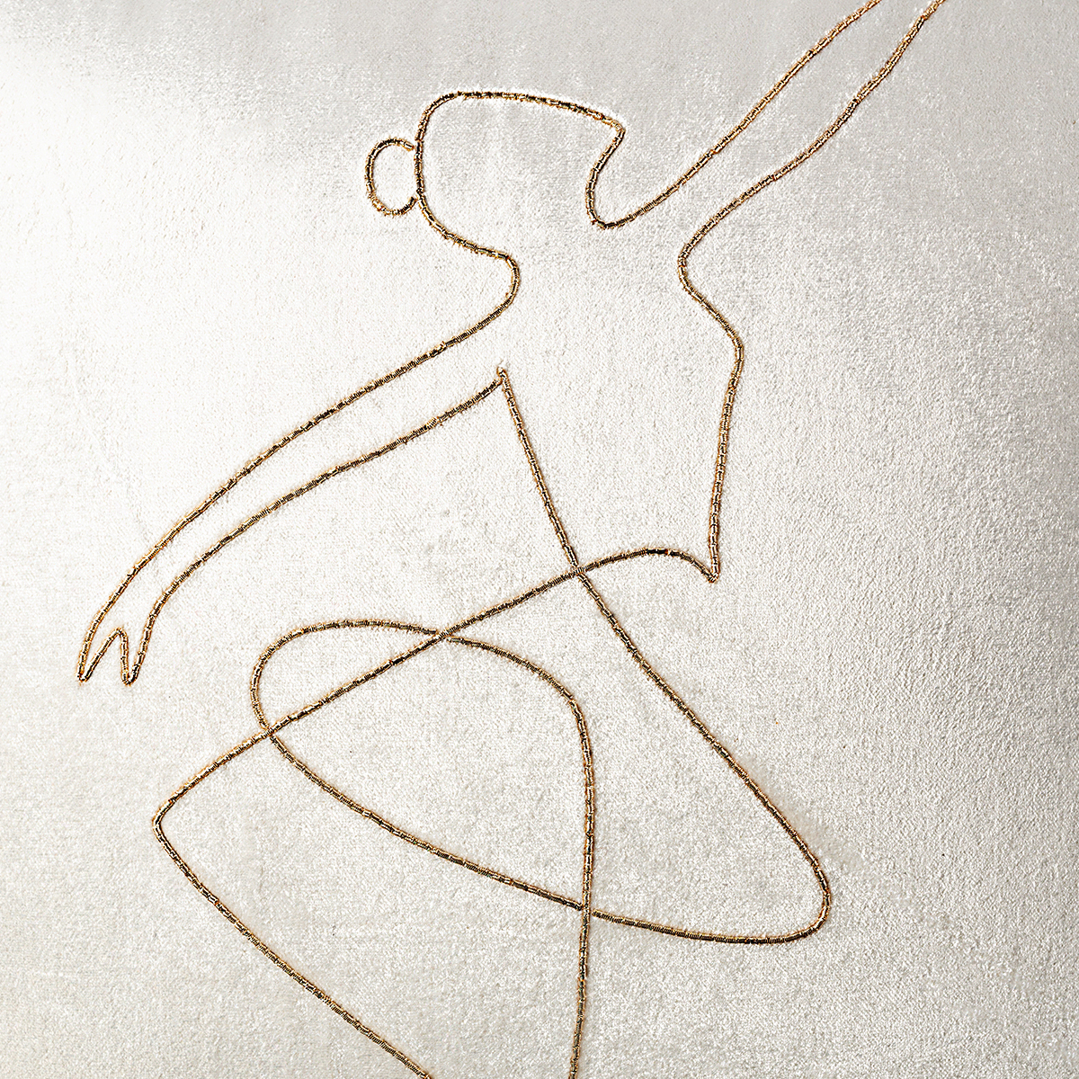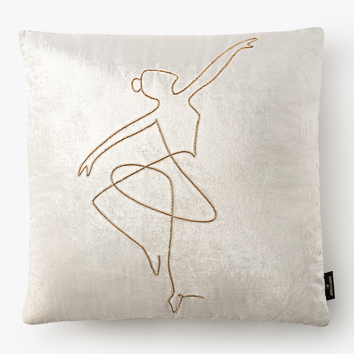 - This is a Ballerina Dancing Girl Embroidered Line Cushion Cover, featuring a graceful, single-line drawing of a ballerina mid-dance pose.