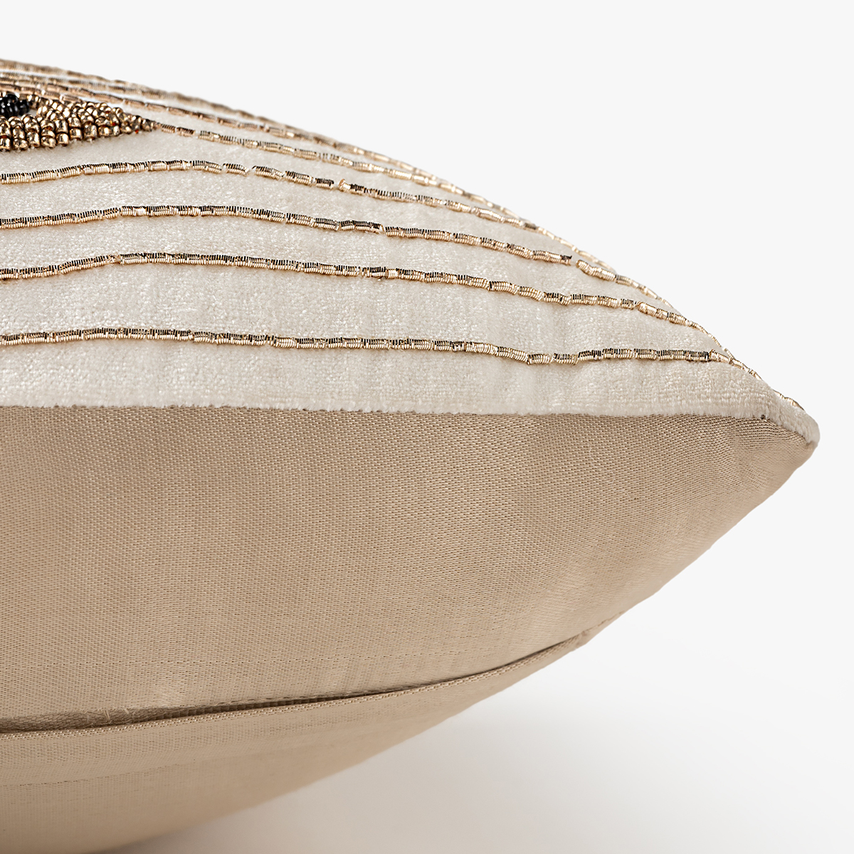 - Featuring detailed eye motifs on a soft neutral base, this designer cushion cover blends comfort with modern aesthetics — perfect for elevating your sofa, bed, or lounge décor.