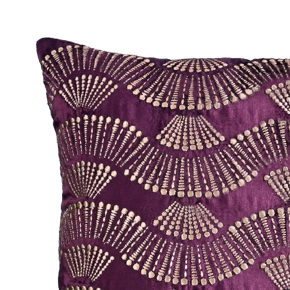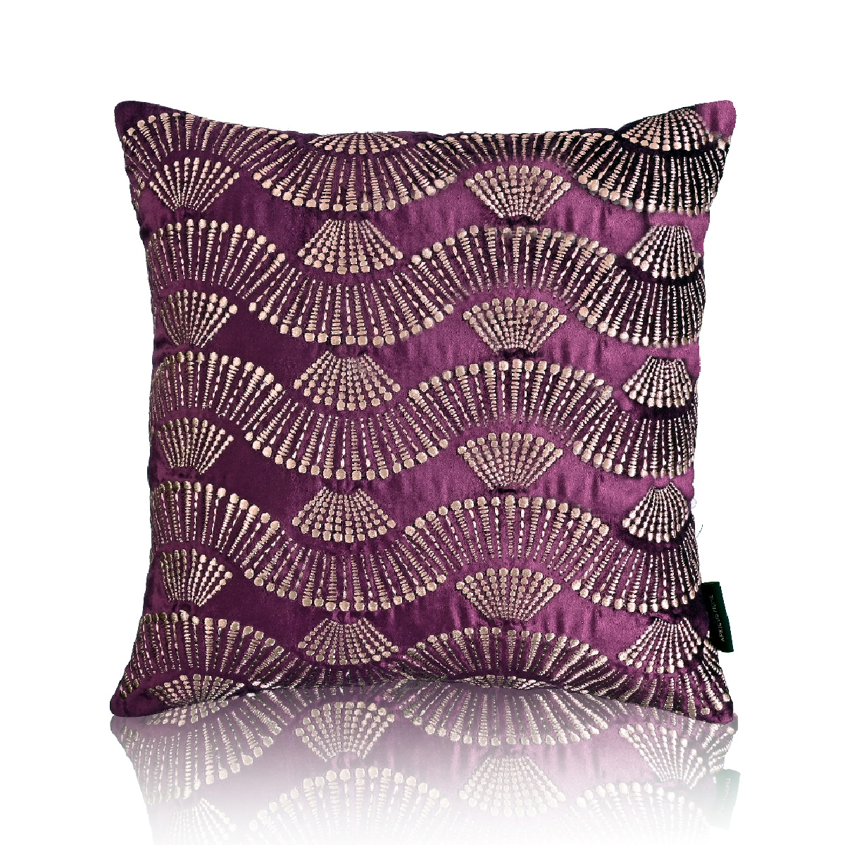 - Unfurl the aura of opulence and luxury with this dark mauve cushion with intricate embroidery and coloured accent.