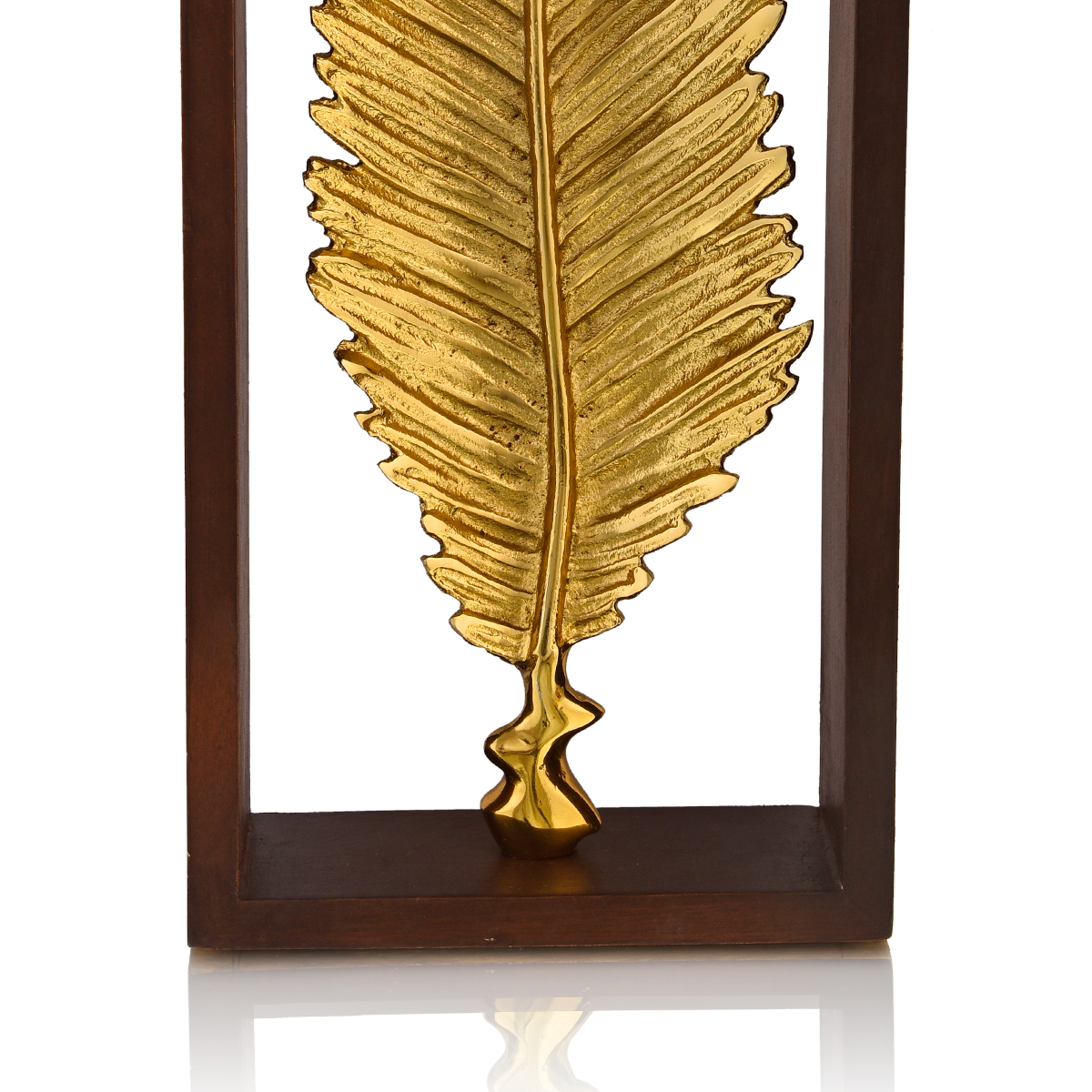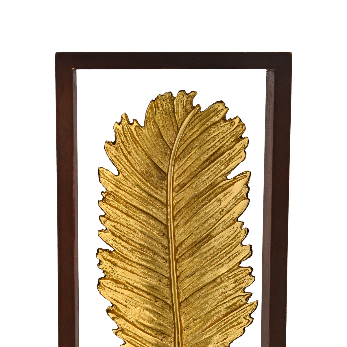 - Featuring a beautifully detailed golden palm leaf encased in a sleek wooden frame, it blends organic charm with modern sophistication.