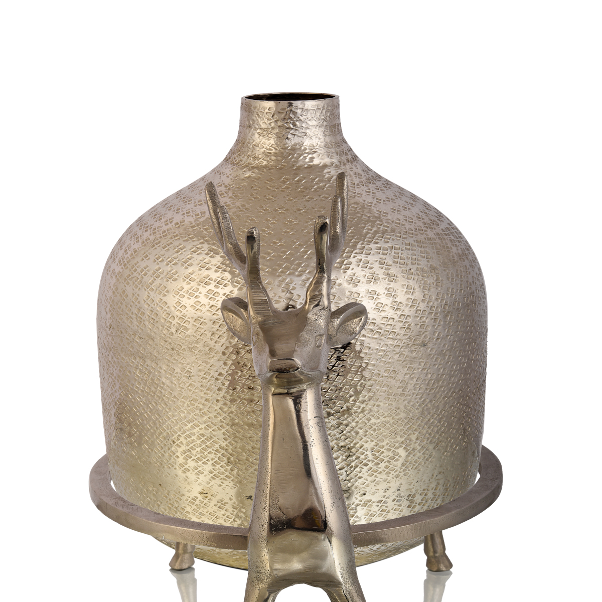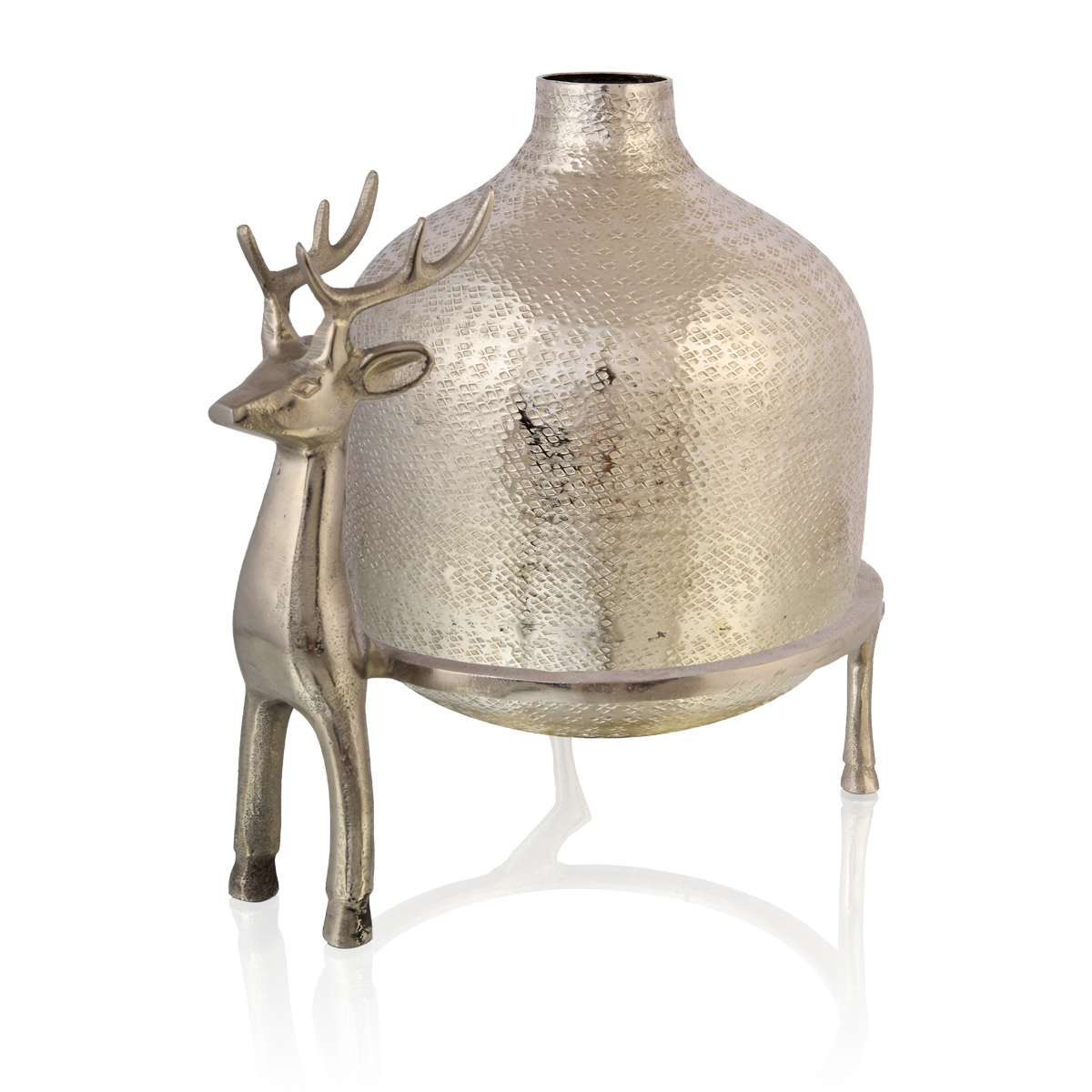 - An exquisite blend of artistry and elegance, the Reindeer Decorative Vase features a stunning vase perched on a gracefully designed reindeer figurine. Crafted with meticulous detail, this piece embodies sophistication while adding a touch of festive charm to your interior décor.